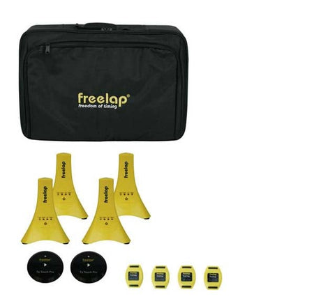 Freelap PRO BT424 sprint training system. The athlete wears the FxChip BLE which wirelessly transmits the data to the coach. Works on Android or iOS. Two FxChip BLE transmitters included.