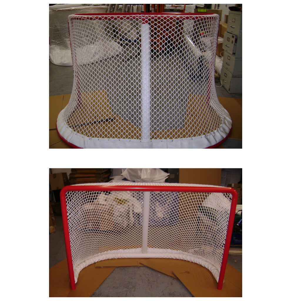 This hockey package includes: a pair of NHL-standard goals, 4mm-thick mesh nets, padding for the base, top, and rear support bar, and an anti-cut protector on the outside of the net. Assembly of the set is available as an option.