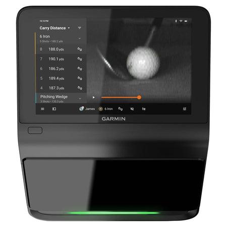 Garmin Approach R50 golf simulator, high-end model with a 10" color touchscreen. Displays data and 43,000 courses worldwide. More than 15 ball and club metrics. Watch high-speed impact videos for immediate feedback. Compatible with all your clubs, from driver to putter.