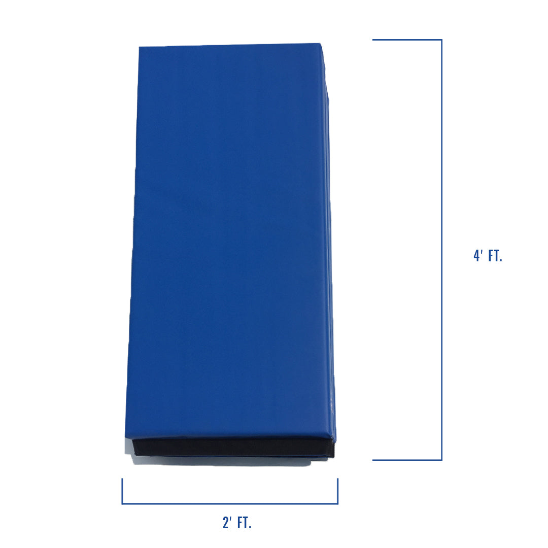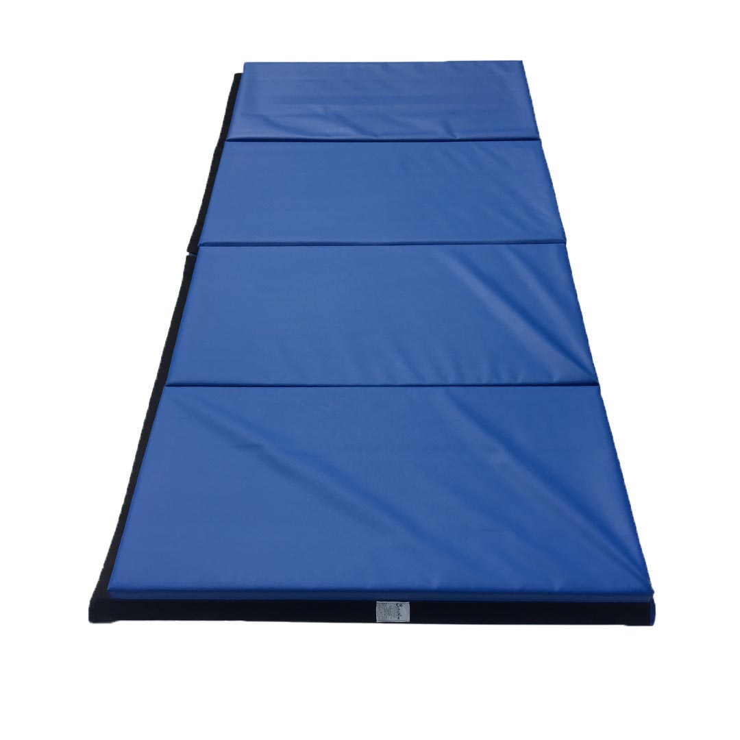 Gym mat with color options. The ideal mat for schools. This gym mat folds easily at every 2-foot section. It features 2 inches of high-density polyurethane foam with an ILD of 110. The gym mat is covered with high-quality 18oz vinyl, including antibacterial and flame-retardant treatments.