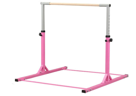 Do you have children who practice gymnastics at home? Do they practice with a gymnastic bar? What if they are not the same age? The bar is too high or too low. Our adjustable gymnastic bar is the solution to your problems because it can be adjusted and will last much longer than a conventional bar. Pink in color super attractive for young girls and well constructed for safety. They will have so much fun practicing!