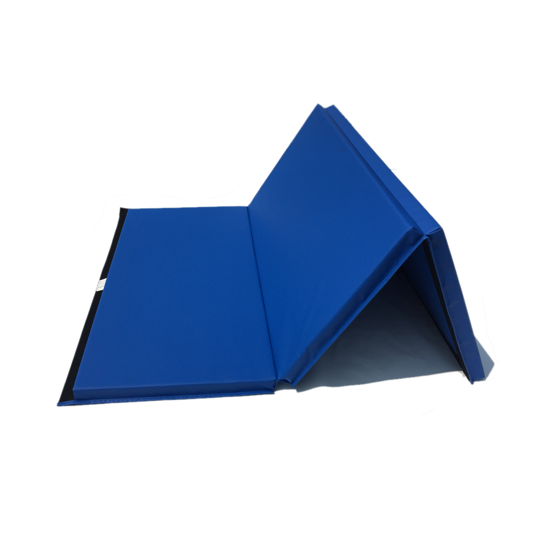 The gym mat is ideal for high school and college gymnasiums. Density and firmness recommended for the practice of competitive gymnastics and martial arts including Olympic wrestling This gymnastic mattress is easily foldable at each section of 2 feet. It is made of high density ethylene foam for firmness and an incomparable level of protection. The institutional quality gym mat is covered with a premium quality 18oz vinyl including the required anti-bacterial and anti-flame treatment.