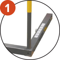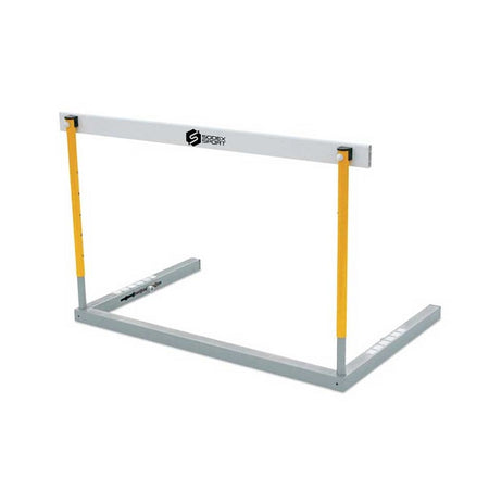 Steel base competition hurdle adjustable from 0.76m to 1.06m. Back counterweight and wooden top bar. Length 1.2mx 0.72m deep. The counterweights can be adjusted to 5 positions, allowing an optimal balance for the tilting force, in accordance with the recommendations of the Athletics Federations.