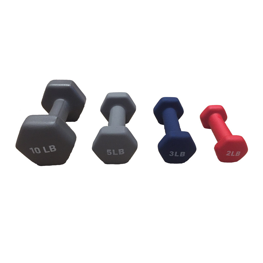 The multicolored neoprene hexagonal dumbbells are ideal for training at home and easy to store given the small size. The dumbbells will satisfy the whole family to stay in shape. Sold individually.
