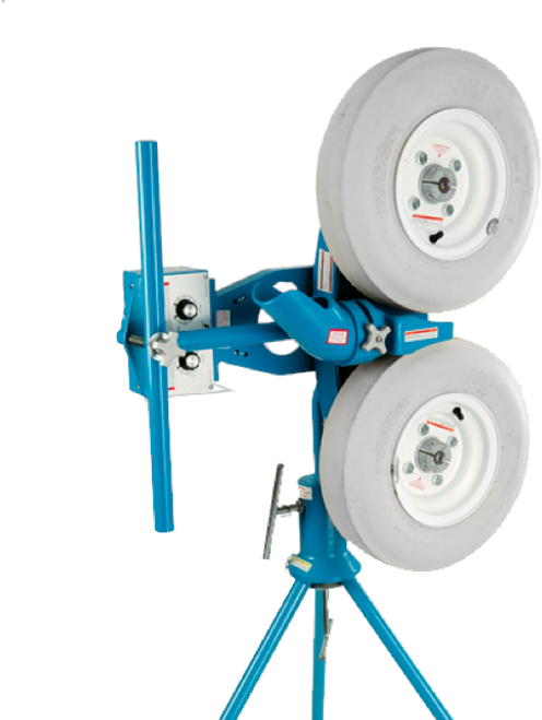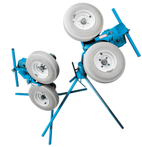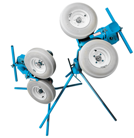 Jugs 2 in 1 Ball Machine with two wheels from Jugs. The Combo machine allows you to throw baseballs or softballs. 2 machines in 1, perfect for trainers juggling a tight budget. Comes with two sets of legs to adjust the height.