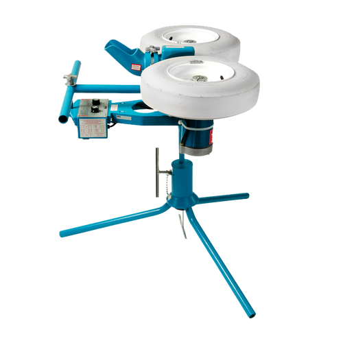 This ball machine's unique swivel base provides 360-degree movement for fly balls, pop-ups and ground balls.