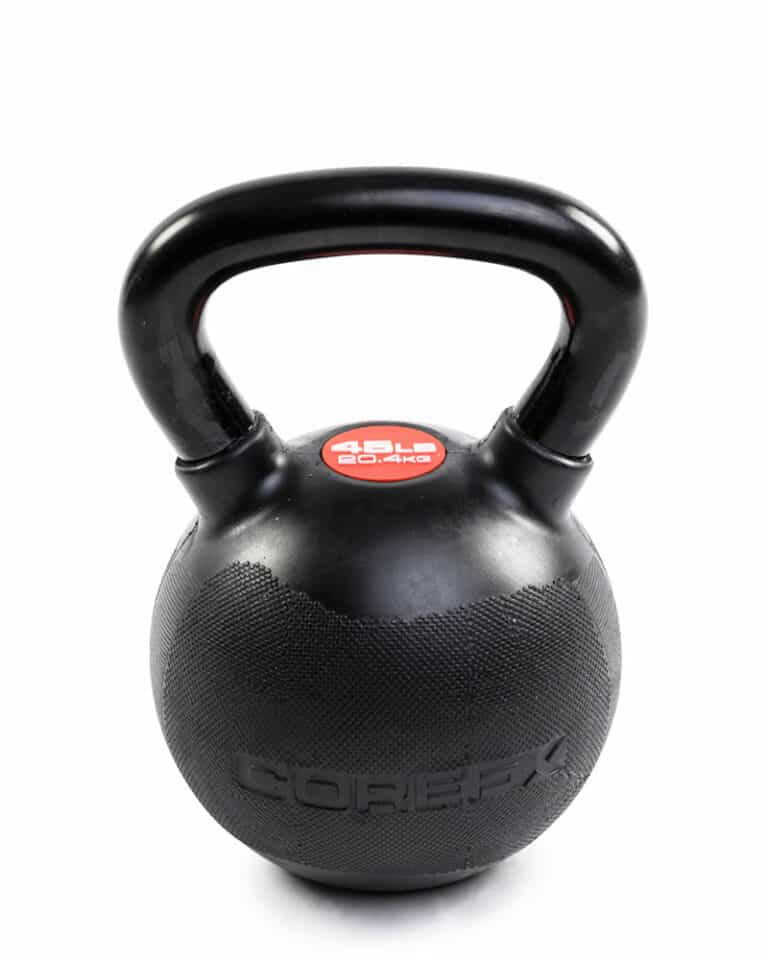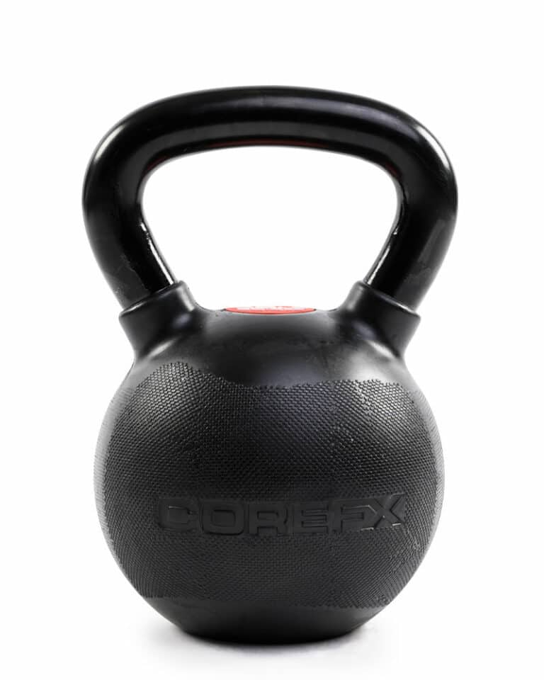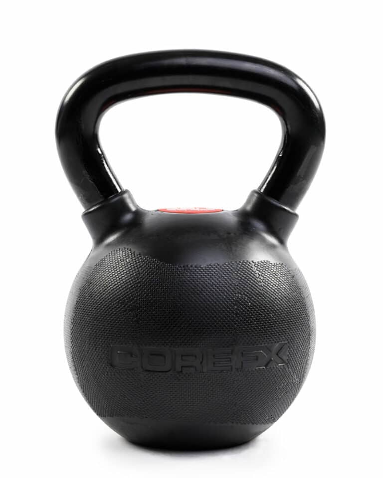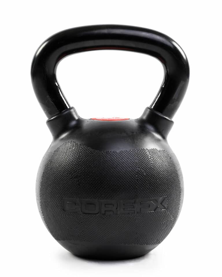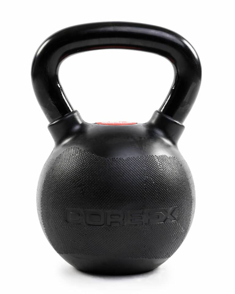 COREFX kettlebells feature a premium rubber coating with a dual-surface texture for superior grip. Designed to prevent scratches and chips that often occur with repeated use of kettlebells.