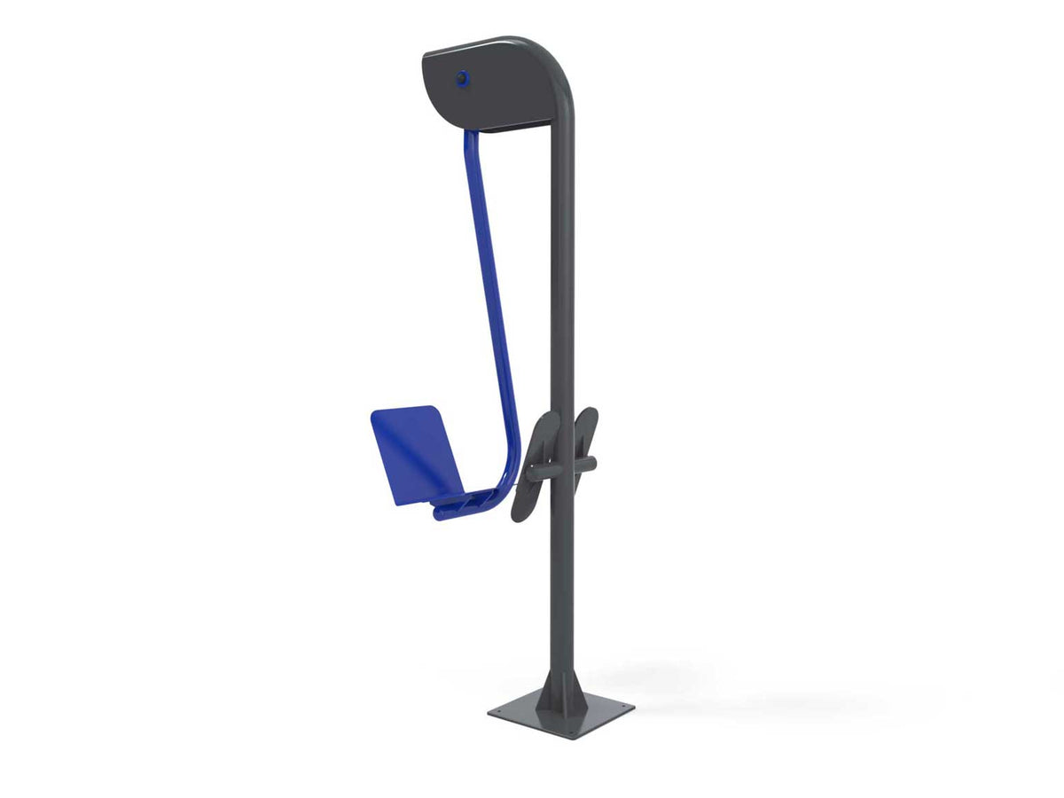 Made of galvanized steel with a gray powder-coated finish for the frame and blue for the moving parts.