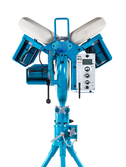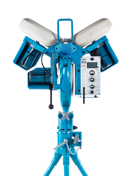 Jugs BP3 ball machine performs 9 different shots with the simple turn of a dial, including speed changes. Micro-adjustments allow you to go from inside to outside shooting or up and down the grip area with the flick of your wrist.