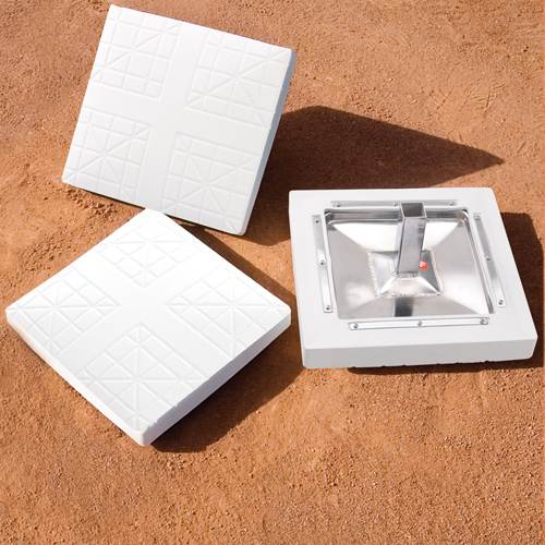 Our Major League Baseball Cushions are made to be anchored to the ground and to prevent injuries when slipping. Covered in white rubber. Cushions are 3" thick and 15" square. Steel anchors and plugs optional.