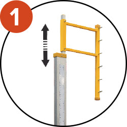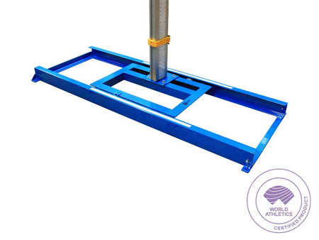 IAAF certified pole vault upright. Adjustable height: 2.4m - 6.4m. Folding post to allow storage under cover. Post on rail to access each side of the jumping mat. World Athletics Certified Pole Vault Amount. English and metric scale. The bases are made of heavy steel for added strength and stability. These bases are detachable for easy transport and storage. Also includes 8 anchor pins. Height adjustment from 366 cm to 640 cm.