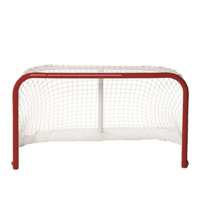 Mountable mini-hockey goal. Assembly of the goal by pressure (without tools). Quality polyester net. Plastic end caps to protect floors ideal for play in the gymnasium or in the basement.