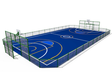 The multi-game sports field is designed to accommodate a wide variety of sports activities. This multisport area adapts to the needs of schools, communities, and sports complexes. Durable, safe, and customizable, it allows the practice of several sports such as soccer, basketball, or handball in the same space. Ideal for optimizing limited surface areas while encouraging inclusion and year-round play.