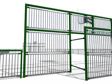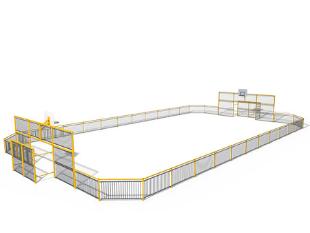 - Ball-stop nets at ends: 7.5 x 3.2 m, and 1.1 m high perimeter guardrails