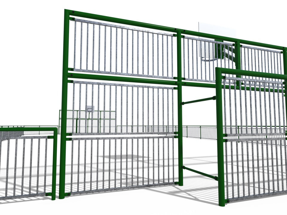 - Multifunction goals 3 x 2 m and basketball hoops installed at 2.6 m or 3.05 m