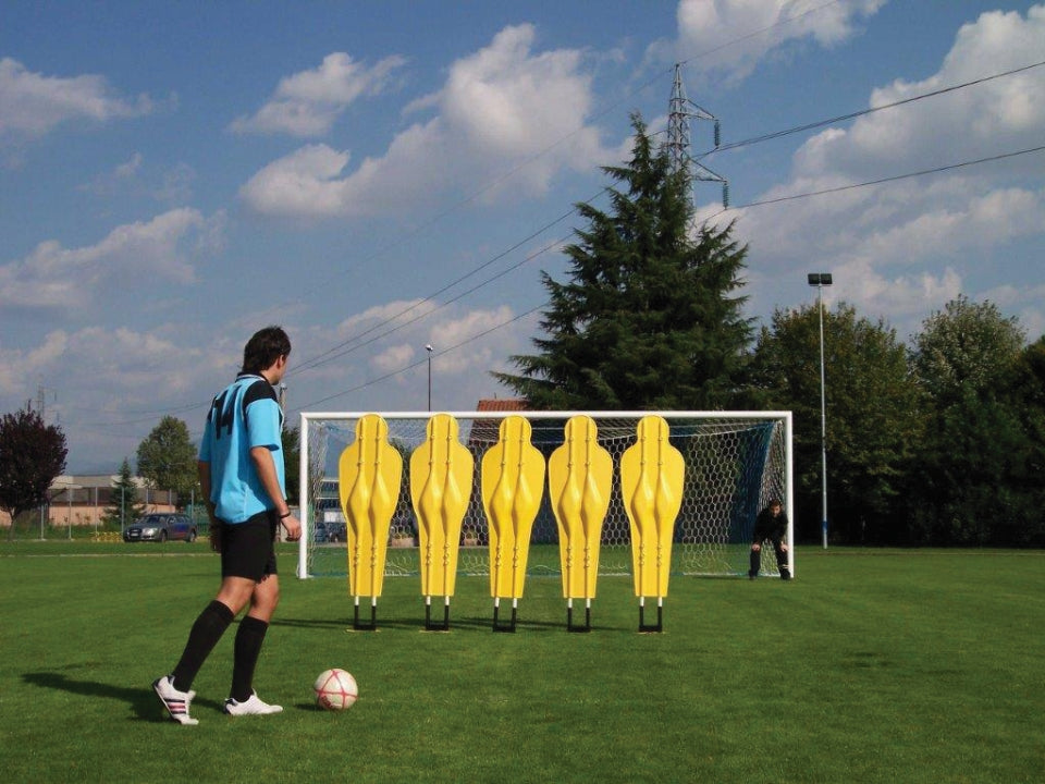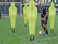 Composed of 5 shapes adjustable in height and mounted on 2 support posts with mechanical joint at the base. Once hit, it returns to its starting position. It is very versatile and can also be used for training to improve dribbling, being an obstacle reflecting the usual situations during matches.