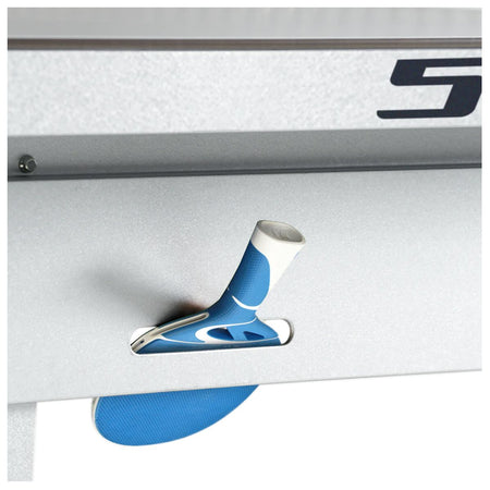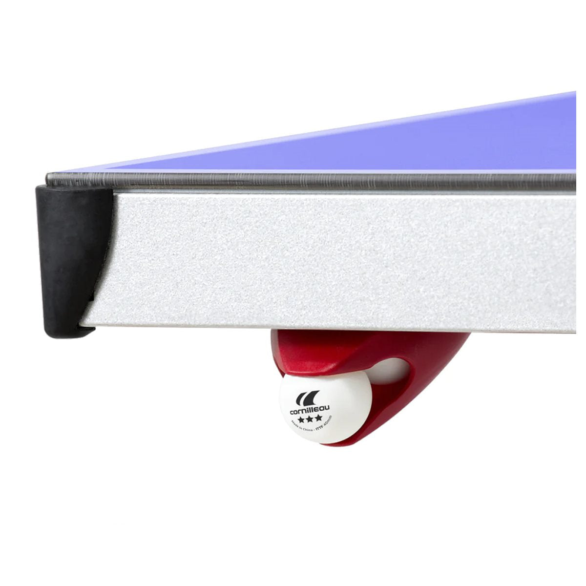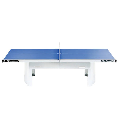 Outdoor park table tennis. Designed to be fixed to the ground, it features anchoring jacks. It can be installed even in public spaces without losing its key features: its permanent steel net is tamper-proof. This table is suitable for all conditions and is resistant to impacts and weather. Its exceptional durability makes it an all-terrain table. The tabletop is made of laminated resin panel with a "MAT TOP" finish and a steel frame.