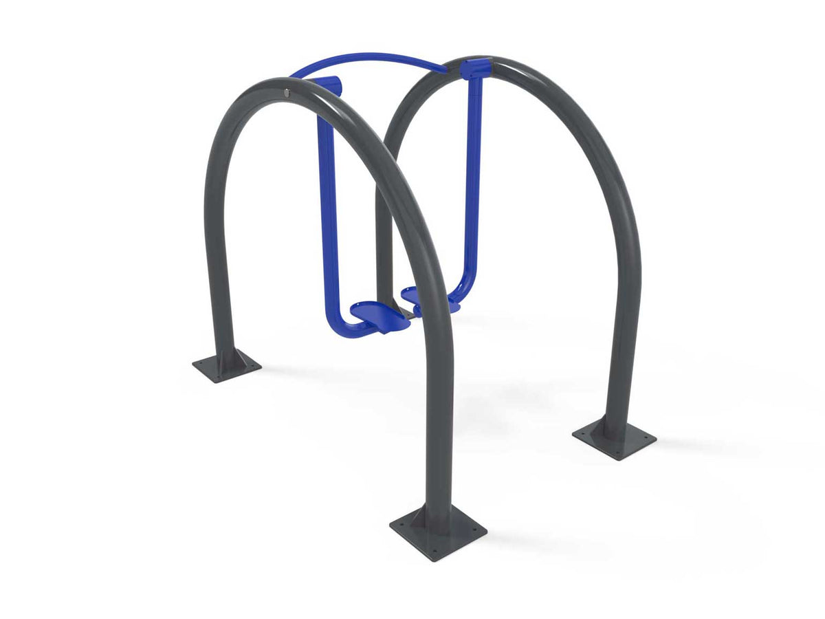 Made of galvanized steel with a gray powder-coated finish for the frame and blue for the moving parts.