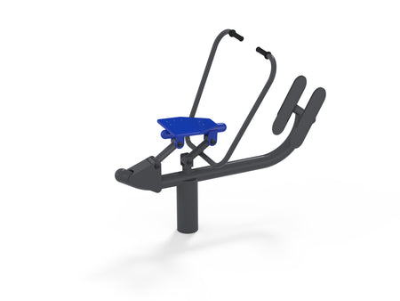 Outdoor Rower made of a galvanized steel frame with a gray and blue powder-coated finish. Simulates the motion of rowers. This popular machine can be moved from the gym to the park.
