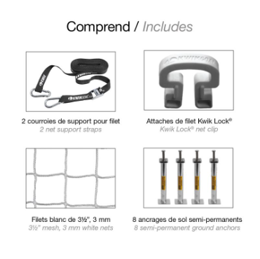 The Kwik Goal Euro senior soccer goal set is designed for semi-permanent or portable use, featuring a fully aluminum frame that is durable and suitable for all surfaces. The European-style braces provide a professional, international look while optimizing frame stability. Each goal comes complete with net, ground anchors, and fasteners for safe and long-lasting installation.