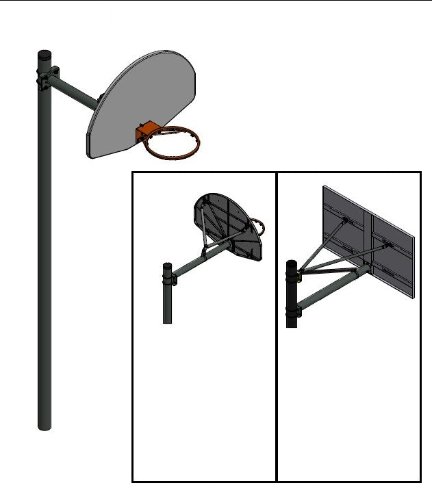 Height-adjustable basketball hoop. Maximize playground and physical education park budgets with the straight basketball post. 3-1/2" OD commercial grade post with 3' horizontal extension arm. Posts are formed from heavy wall galvanized steel for superior weather protection.