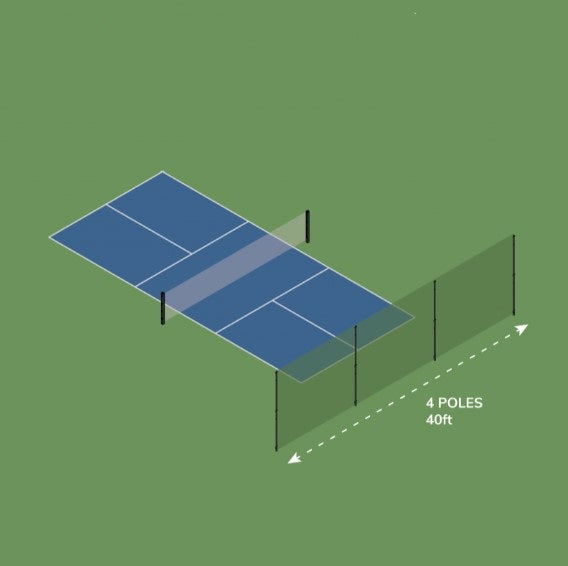 Vermont pickleball court barrier net. Constructed from sturdy 2-inch poles with durable 2-inch mesh netting for long-lasting use. Ideal for clubs, home courts, and schools. Available in 3 variants (side court, end court, and full court).