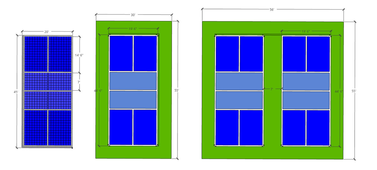 Single Court: 20' x 45'
