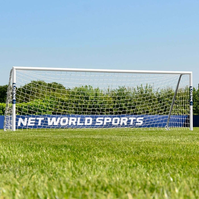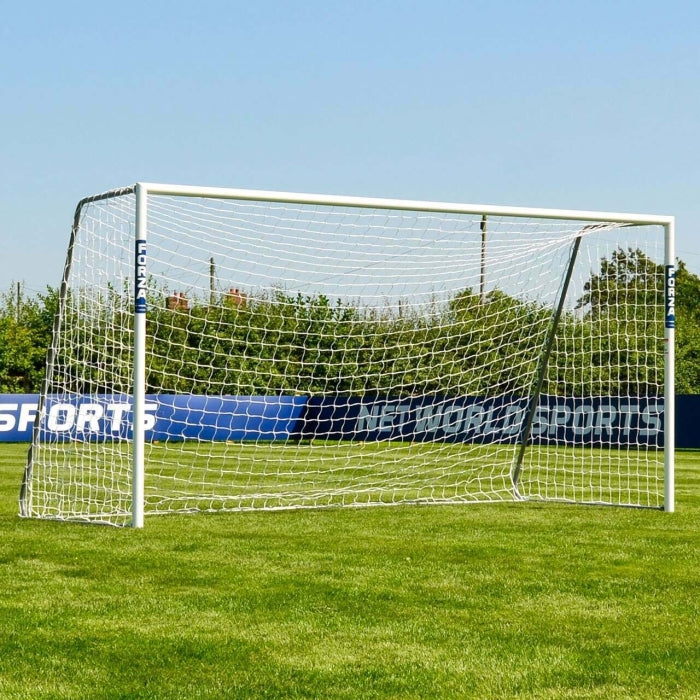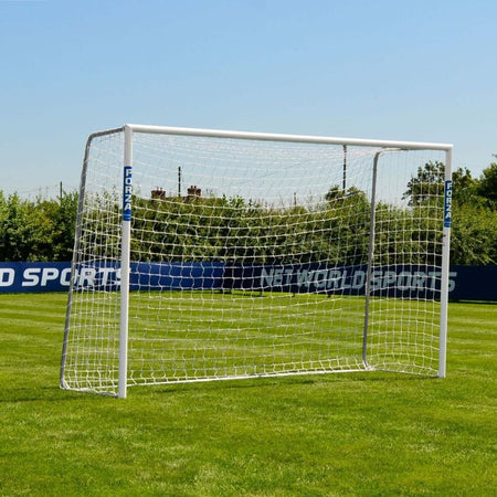 Goal net: Premium 3 mm braided HDPE (100 mm knotless mesh). The soccer goal net is UV-treated and resistant to rot (can be left outdoors). Twist & Lock style nylon net clips securely attach the nets to the rear internal channel of the goalposts. The goal is weather-resistant, requires minimal maintenance, and can be used on all surfaces, including natural grass and synthetic turf fields.
