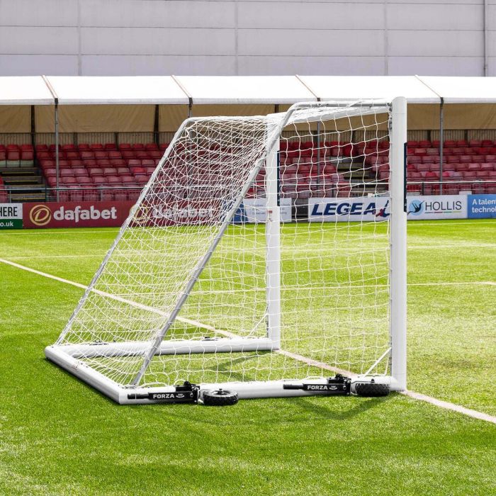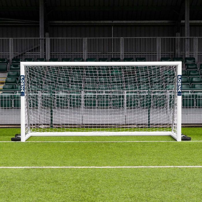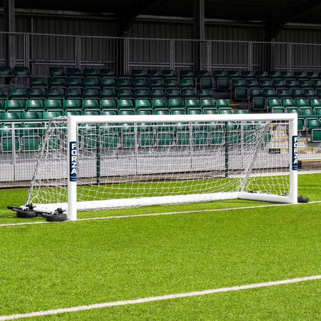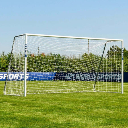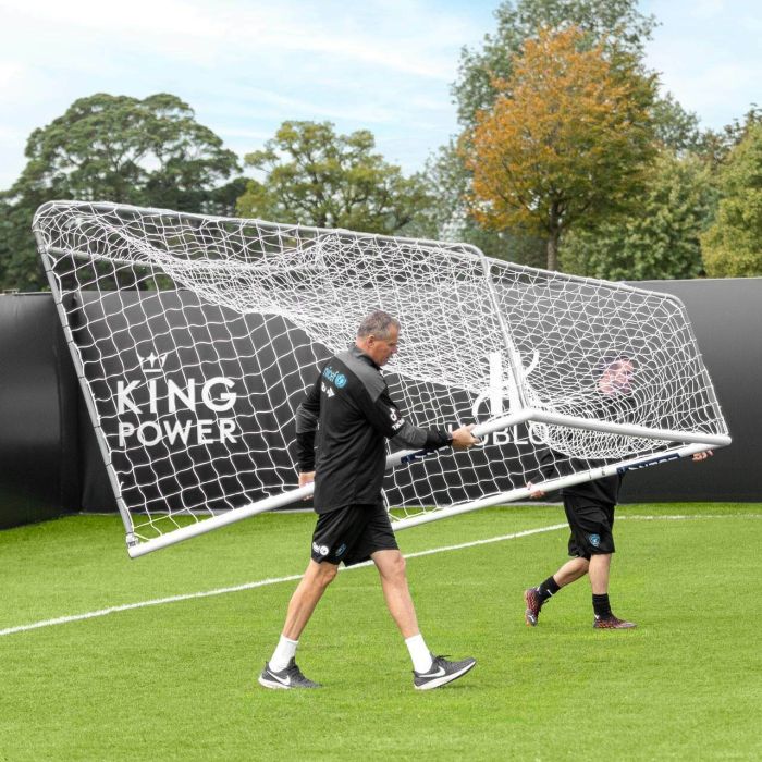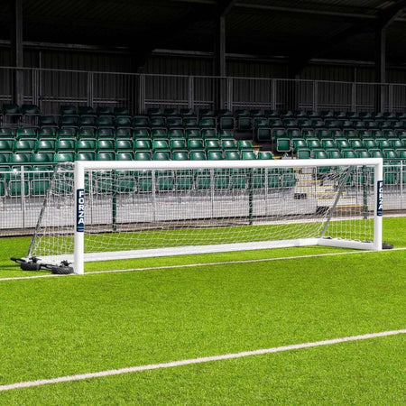 Portable soccer goal. Premium quality soccer goal available in senior and junior sizes. Fully freestanding, the soccer goal features a 60 mm reinforced aluminum frame with a 3 mm braided HDPE net. Weather-resistant and portable.