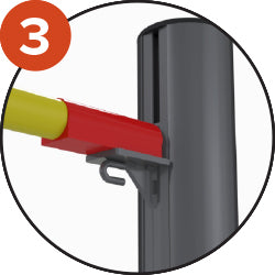 Sliding rail with handle allowing simple and effective height adjustment. World-athletics-certified-high-jump-posts. Hook on the side of the slider for attaching a training cord.