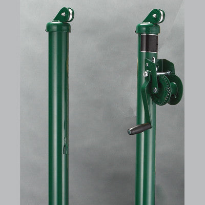 Pair of round poles with external reel. Made of galvanized steel and powder coated. 2 7/8" diameter external reel included . Anchor sold separately. 68 lbs per pair.