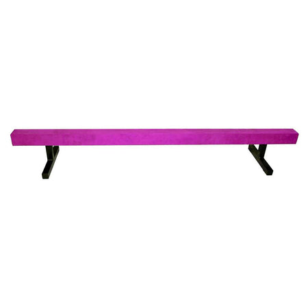 High standing gymnastic beam with suede covering. 8' in length perfect for training. The beam at 4" wide x 5" high. We recommend adding mattresses for landing and falls. Choice of pink, purple, blue or beige colors.