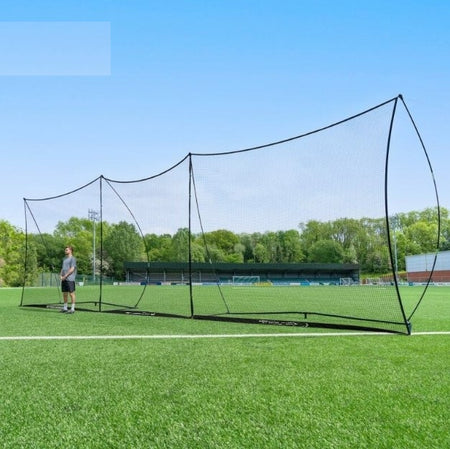 Proflex ball stop net for baseball, football, soccer or golf. The 10-foot high multi-function ball stop net system features a pioneering design, functioning as a ball stop and hitting net. The adjustable structure of this ball net can be positioned at any angle, so it's tailored to your setup. Ideal for gardens, schools and training grounds. Optional base weights available. The base system is 10' high x 11' wide. 19' extensions can be added as an option