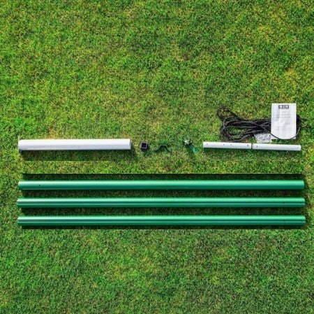 The posts are installed in anchors and can be re-sorted as needed. Nets of different sizes depending on the sport and the desired function. Aluminum poles with paint finish in green color. 900mm anchors to be cast in concrete included. (Concrete not included). The net hangs using a pulley system offering maneuverability from the ground, the nets can be lowered in high winds to avoid damage to the posts.