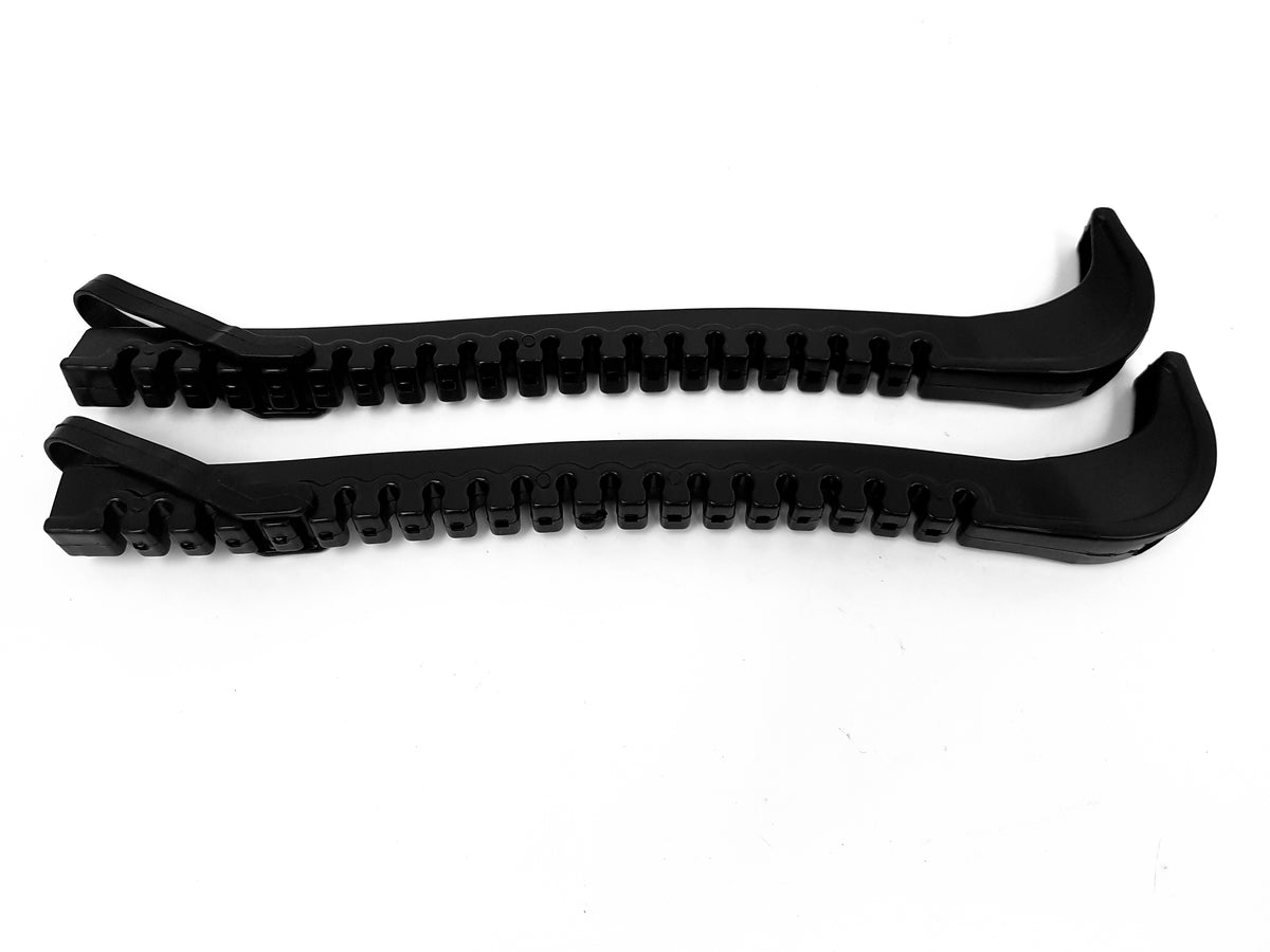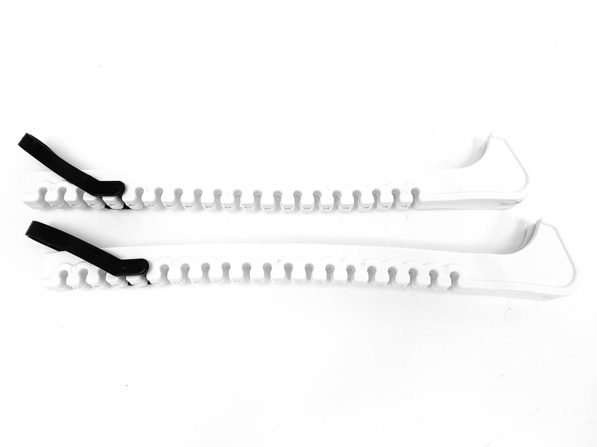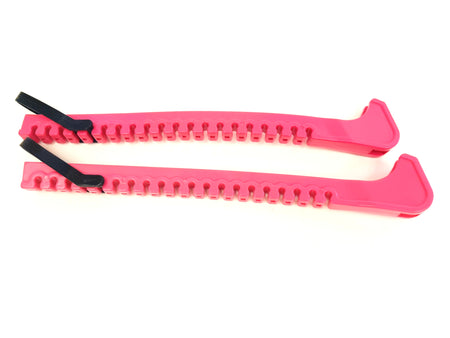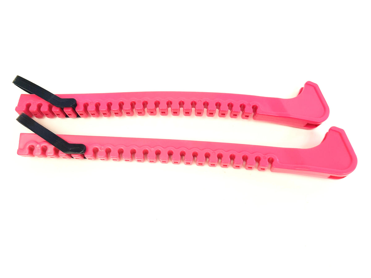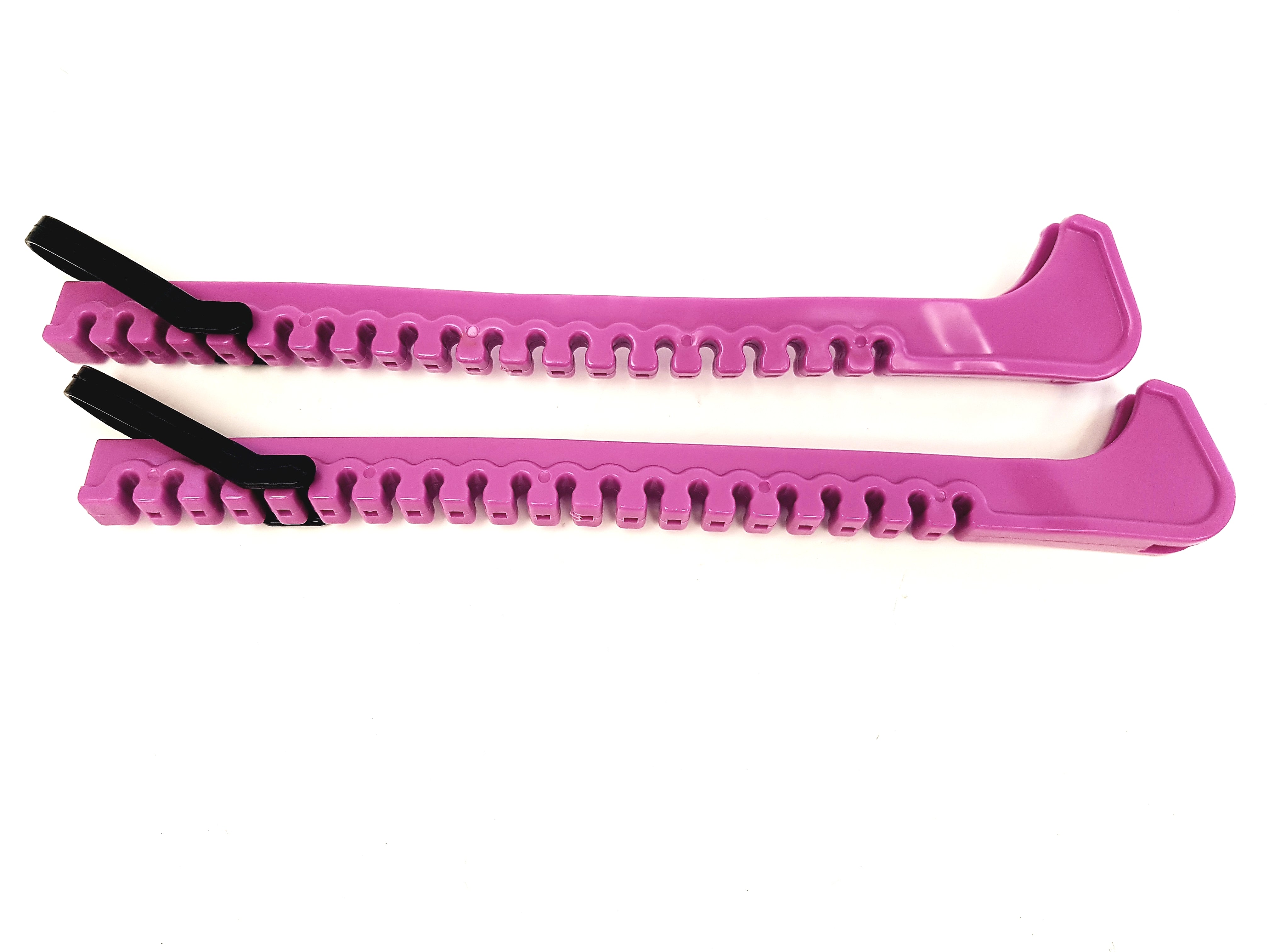 The ice skate blade guards are made of plastic and a strong rubber band. It helps to hold the blade guard in place when installing on your skate. Standard format, adjustable size according to your needs. Available in the following colors; black, blue, white, pink, mauve, red