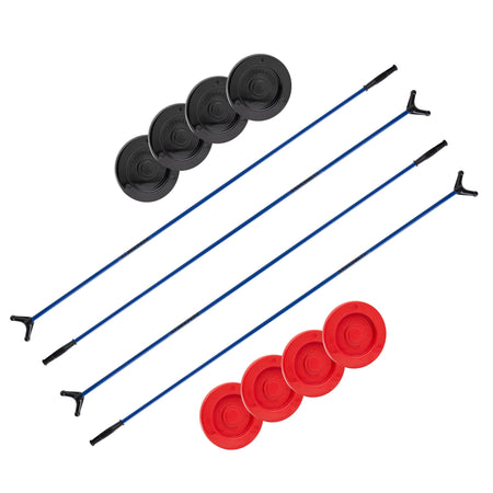 The recreational shuffleboard set is a durable, long-lasting set that is ideal for high-use environments such as schools, resorts, cruise ships and community centers. The set includes all the accessories you need to play on a course near you: 4 recreational cues (DOM85-C), 1 set of 8 recreational discs (DOM-85D) (4 black/4 red). Shuffleboard court is not included.