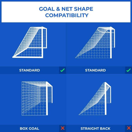 The replacement soccer net comes in thicknesses of 2.5mm, 3mm, or 5mm. Three shapes to choose from: standard, box, or finished triangle, to accommodate almost all types of goals. Please refer to the size chart.