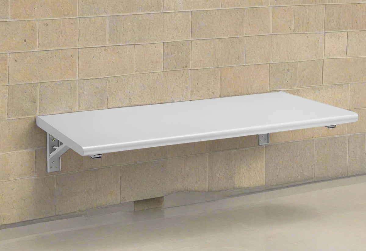 Retractable wall bench. Powder-coated steel frame supports up to 500 lbs.