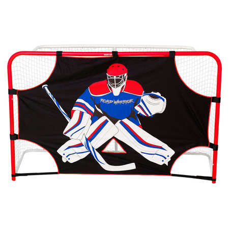Road Warrior hockey goal target. The Road Warrior 72" Shooter Tutor is the ideal target for practicing your shots. The Road Warrior 72" Shooter Tutor is easy to assemble and has 5 cutouts to practice precision and optimal shot placement. This shooting tutor easily attaches to a full-size goal with Velcro straps.