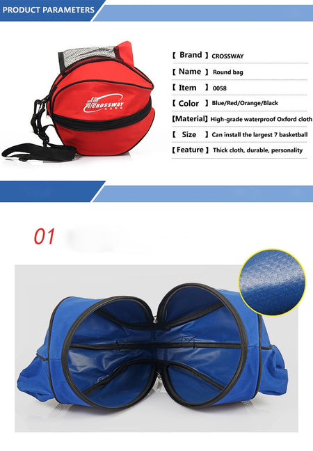 Ball carrying bag, perfect for basketball or soccer ball. Choice of color. Made of water proof materials. Perfect for getting to the field by bike.
