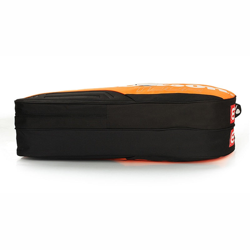 Wilson tennis equipment bag or for other racket sports. Made of good quality waterproof nylon. Size of 72cm x 33cm x 20cm. Velcro handles and adjustable shoulder strap. This product comes directly from the manufacturer.