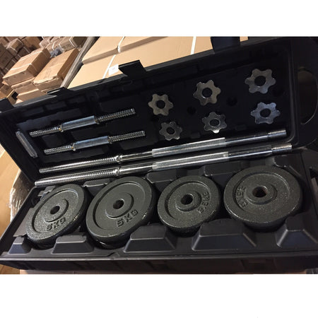 This set offers the possibility to train at home and to travel these weights wherever you go thanks to the included storage box. The exceptional quality set weighs 110 lbs and includes the following weights: