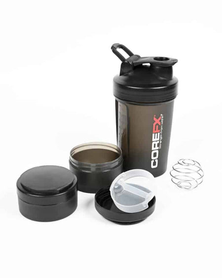 The COREFX shaker is a durable and secure protein bottle! It features a twist-lock cap and a tight-fitting lid, ensuring a productive workout session.