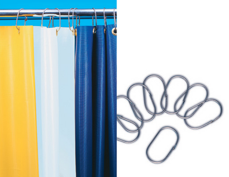 This extra-strong shower curtain is nearly indestructible. Available in three colors, it is made from thick vinyl reinforced with a polyester backing. Brass grommets are installed to prevent your hooks from tearing the fabric.