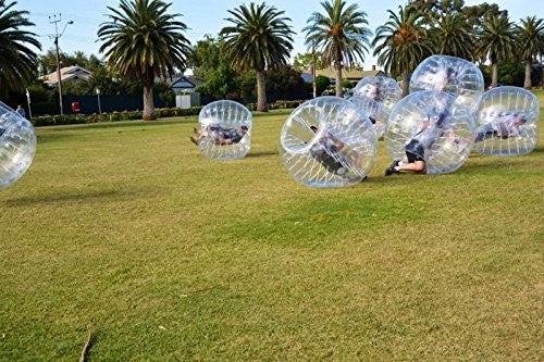Inflatable bubble soccer games are becoming more and more popular. Bubble soccer is a fun and safe activity. Made of durable pvc the bumpers are easy to inflate. Available in a choice of colors and 3 different diameters.