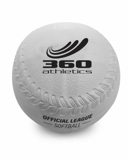 Rubber softball ball. Softer, safer ball. Cork core and white color. 12 inch size. Sold in dozen