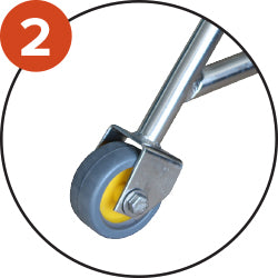 Stainless steel structure for better corrosion resistance. The wheels keep the broom level and facilitate sweeping.