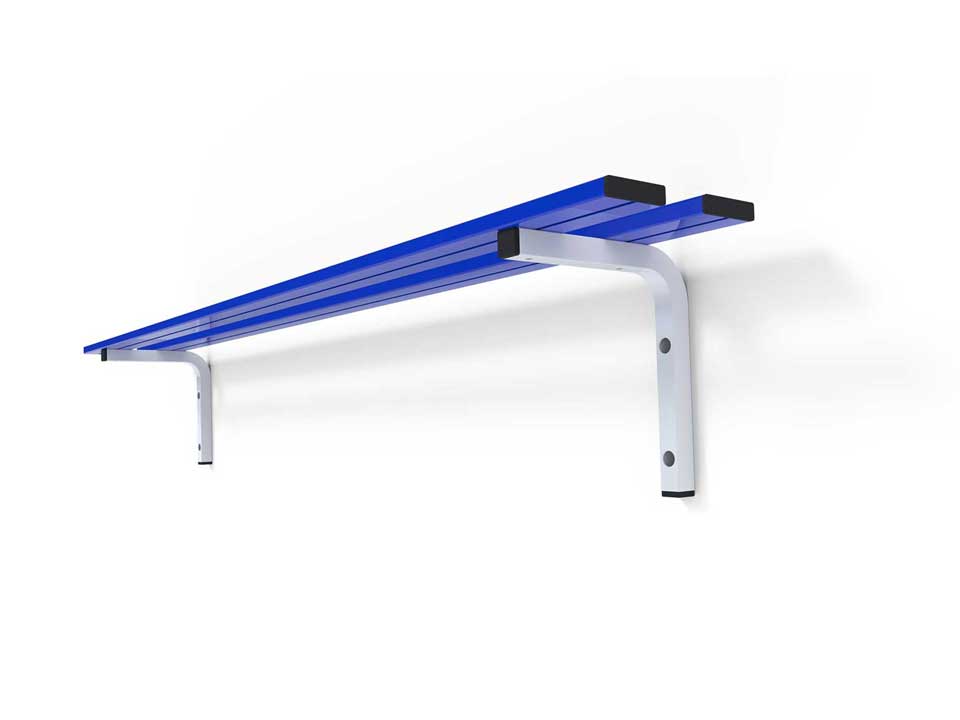 Wall shelf 2m long built with 2 steel support arms and aluminum bars. The shelf can be fixed on the wall.