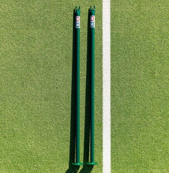 Tennis net support. Designed to convert a doubles tennis court into a singles court, this pair of professional aluminum tennis net posts is essential. The 3.5-foot tall single sticks comply with ITF's official regulations.