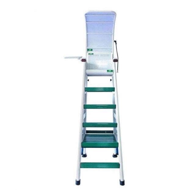 ITF Tennis Umpire Chair. The chair features a frame 100% resistant to rot and rust. Flared leg chair design for extra stability. Compliant with all ITF tournament regulations. Easy to transport and maneuver with wheeled base. Available in standard green, black, blue, or white. The UV-stable powder coating also prevents color deterioration to ensure the umpire chair retains vibrant colors all year round.